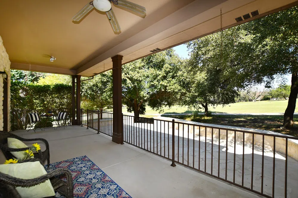 BURLESON PLAN ON GOLF COURSE!!! Always a favorite, this Del Webb-built Burleson estate home backs to Hole No. 5 of Sun City's beautiful Legacy Hills Golf Course. With an east-facing extended flagstone patio, this home features exterior stone on 3+ sides, and a separate golf cart garage in addition to its double garage. Inside features include 10' ceilings, tile floors, fireplace with surrounding built-ins, 2 bay windows, island kitchen with granite counter tops and stainless appliances, office with built-ins and a much-appreciated bonus/hobby room! Don't miss this conveniently located, all-time favorite. Come live your best life in Sun City Texas!